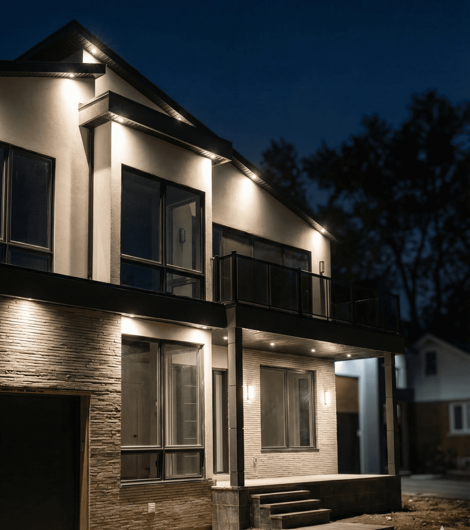 A modern residential home in Mississauga, designed with comfort, function, and elevated aesthetics in mind. The homeowner was looking to enhance both the ambience and usability of their space through thoughtful lighting design — creating a home that feels warm, welcoming, and intelligently illuminated for everyday living. The goal was to improve visibility, highlight architectural features, and bring a refined sense of balance between form and function throughout the home.