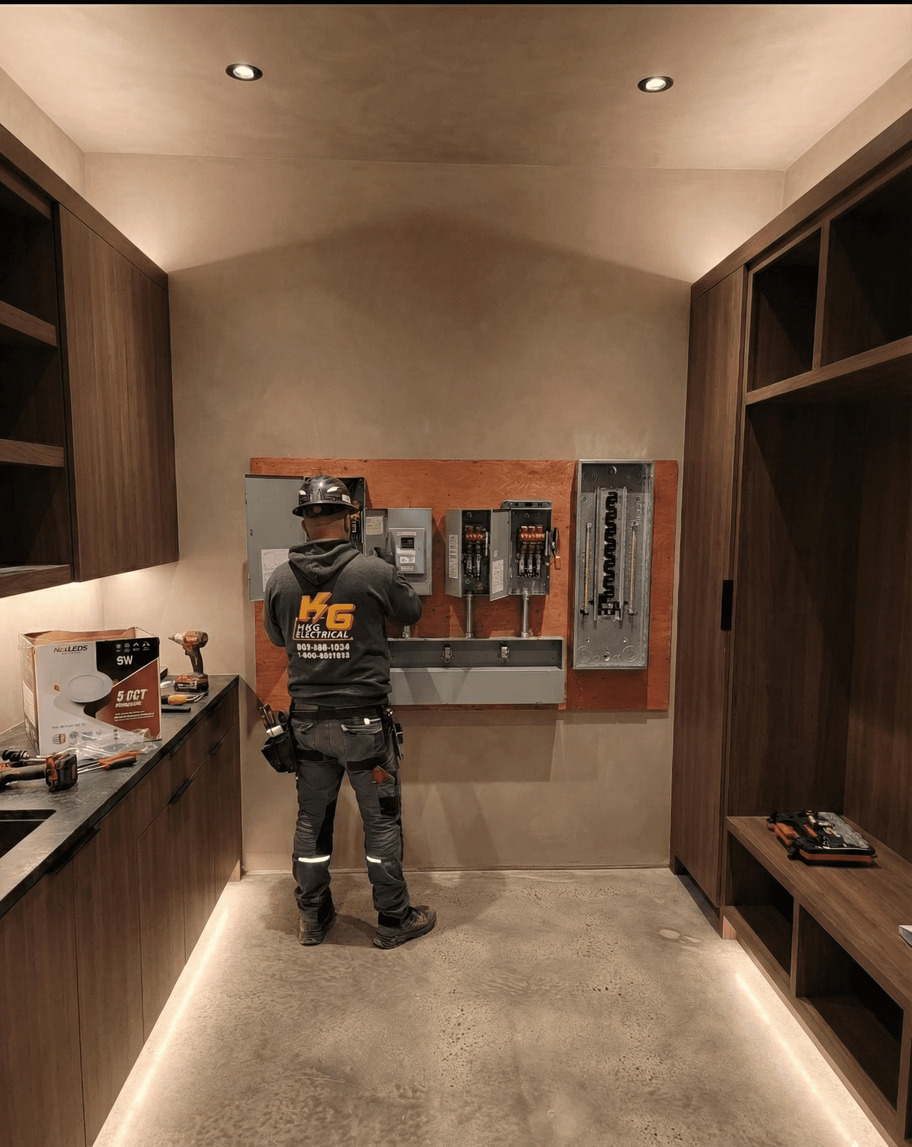 We delivered a tailored electrical solution that balanced aesthetics with performance. Thoughtfully placed lighting enhanced the home’s natural textures and clean lines, creating a refined yet inviting environment. From accent lighting to functional upgrades, every detail was executed with precision to ensure long-term reliability, visual harmony, and a modern living experience that feels both effortless and elevated.